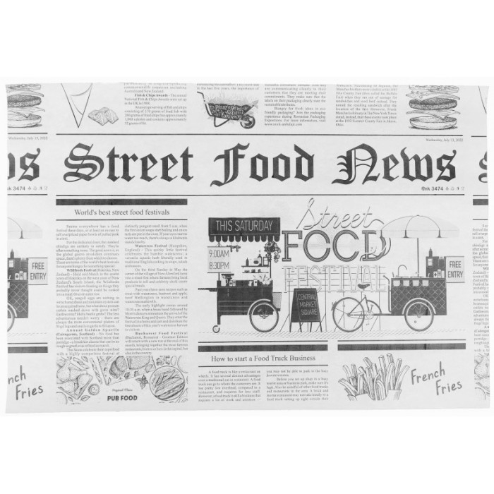 Sanipack Hartie cu PE pentru Shaorma Ziar 250X370 mm/ 5 KG/ ~1350 buc
