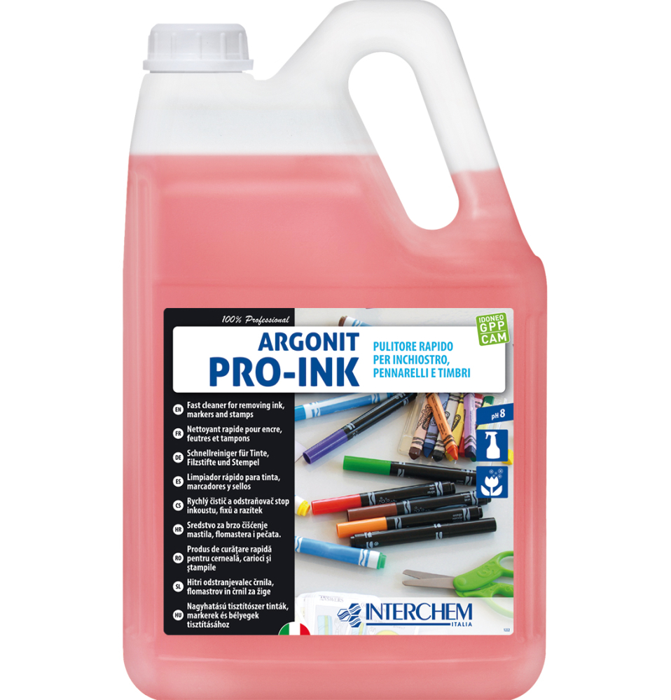 Detergent puternic parfumat, specific pentru curatarea urmelor de pix, marker permanent, cerneala, tus, graffiti, vaselina ,grasimi anorganice, urme de scoci. Nu necesita clatire, nu lasa urme si spatiile raman placut parfumate.